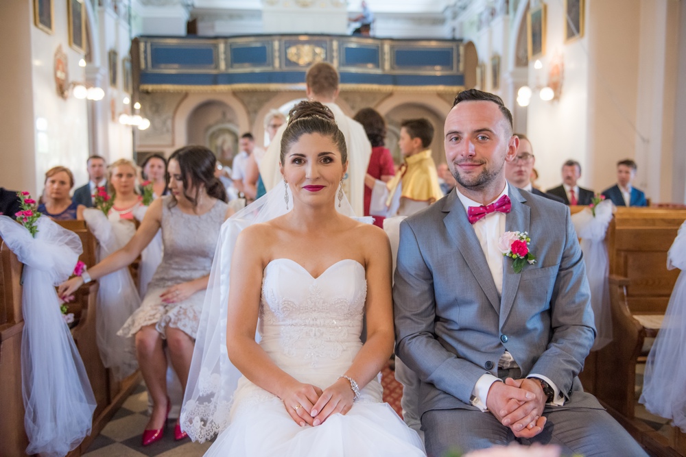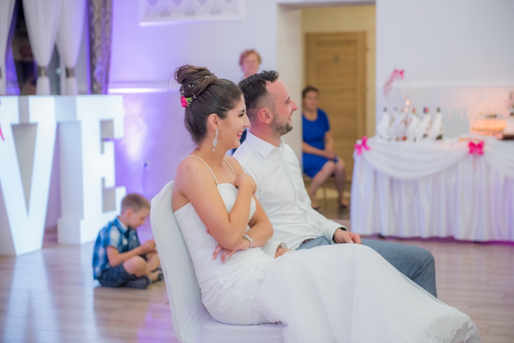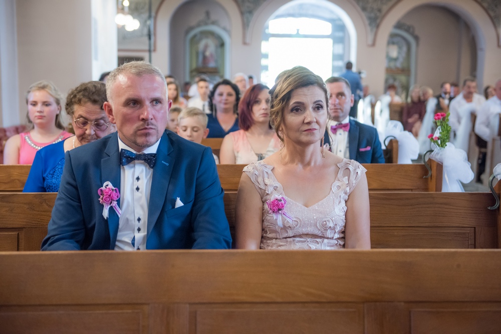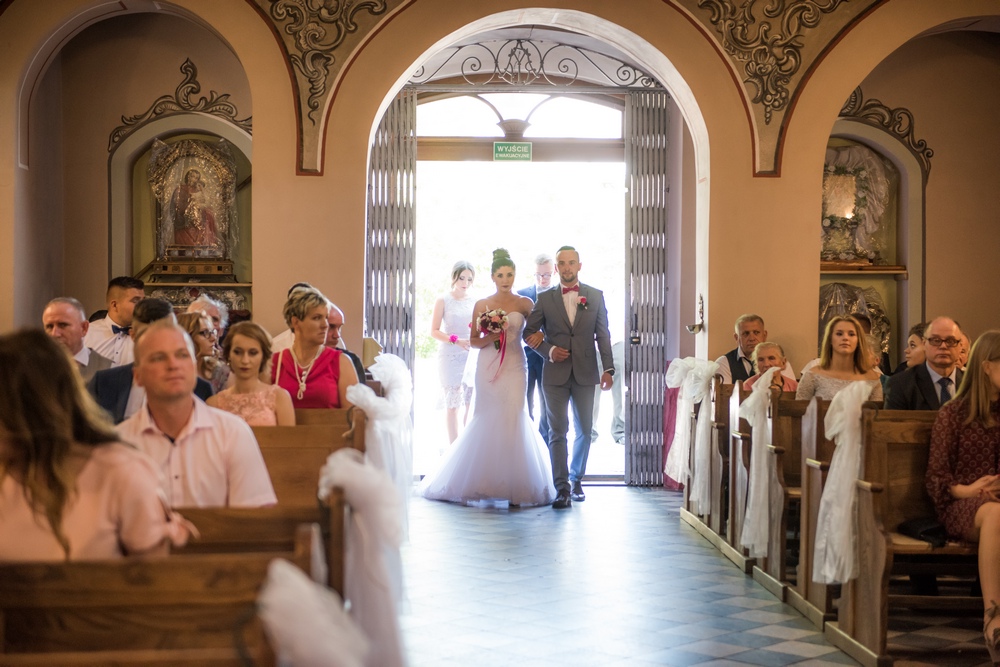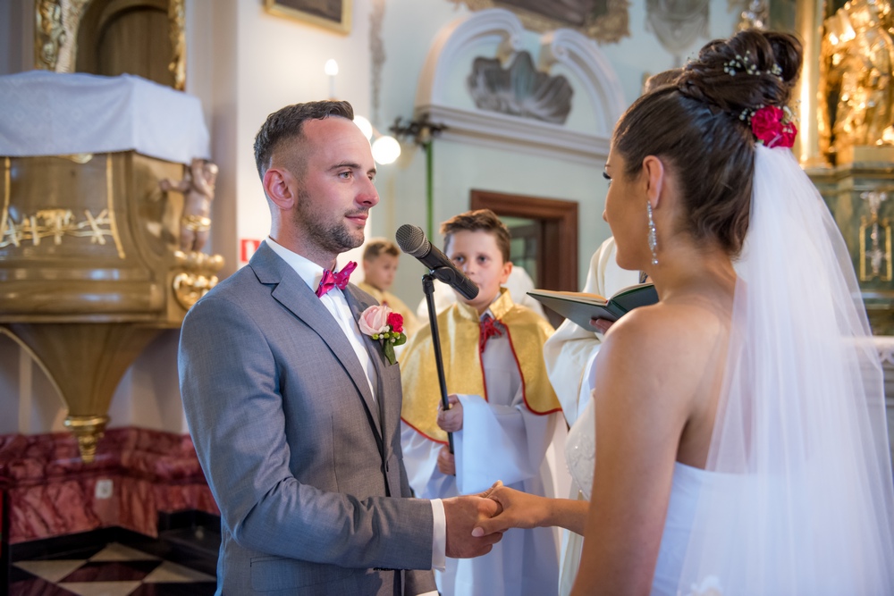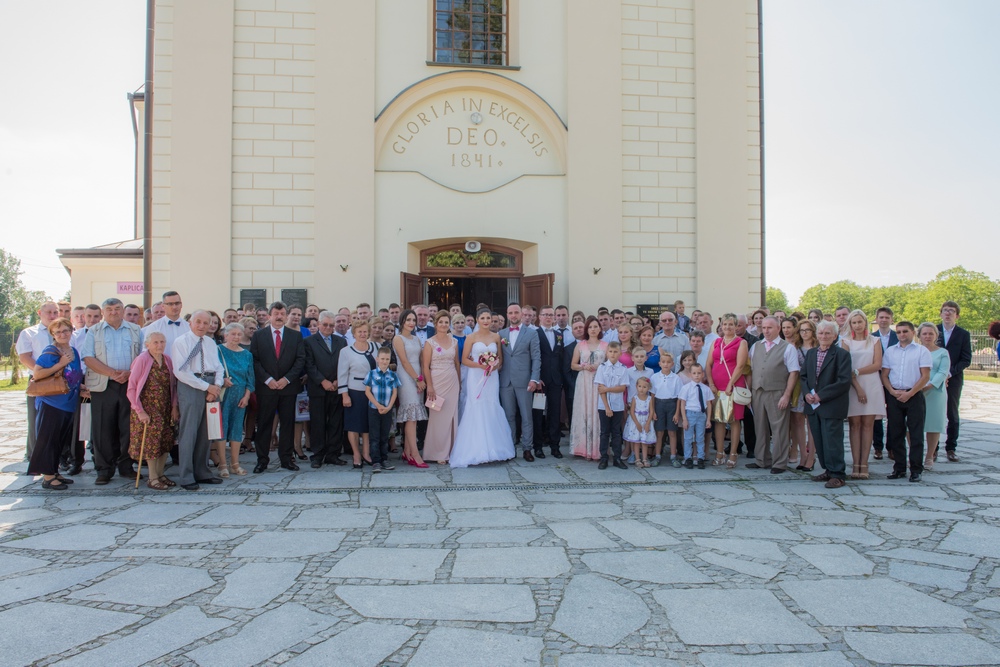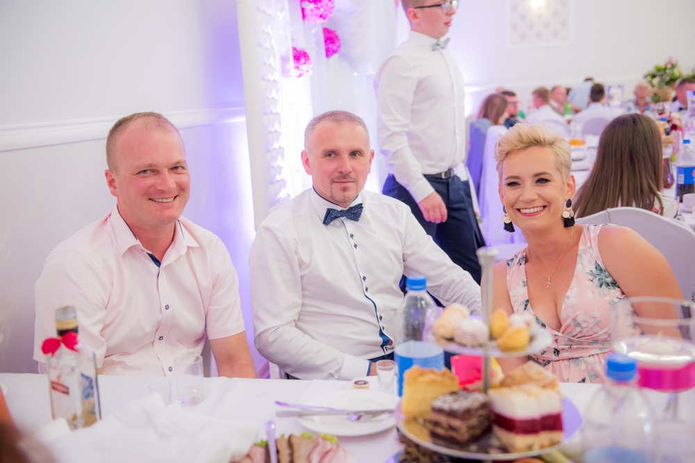 Bogato przystrojony kwiatami kościół, zaskakujące aranżacje światłem, przepyszny tort i cały wystrój sali w Krzeszowie nadały tej uroczystości elegancji i niepowtarzalności.