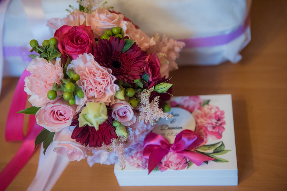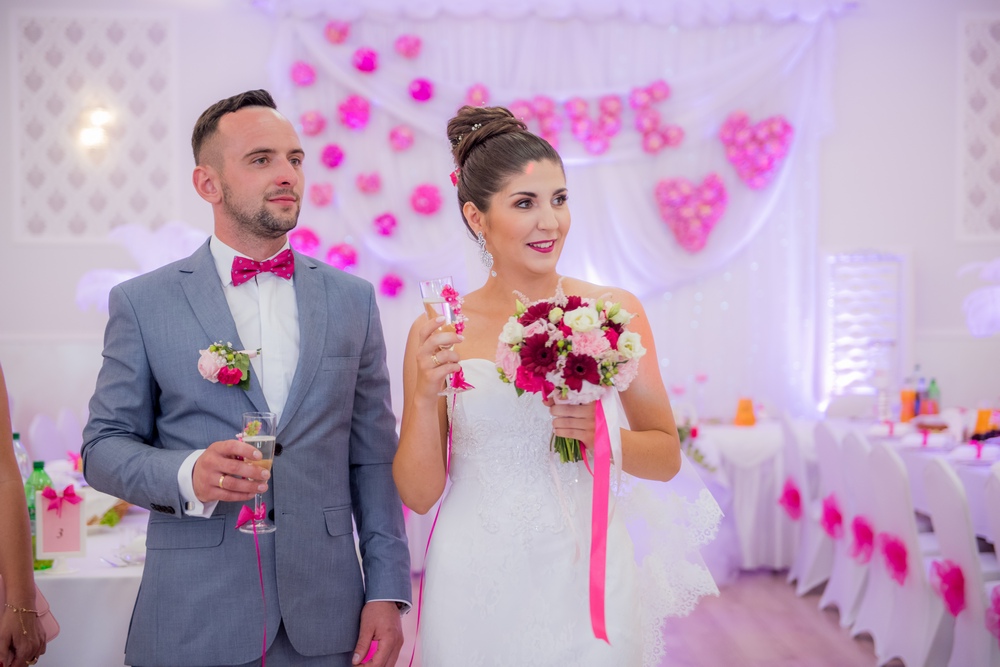 Odcienie różu wspaniale towarzyszyły sukni Pani Młodej.